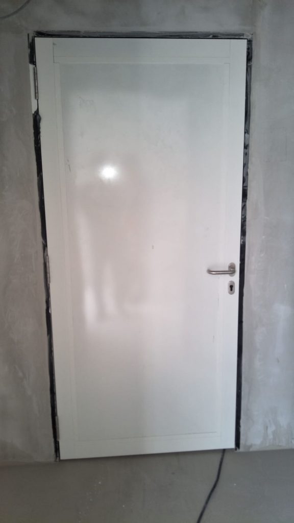 Insulated single leaf door using “AH” lightweight insulation blocks